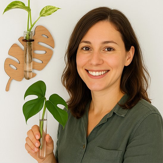 Vous vous sentez à l'étroit dans votre appartement mais rêvez quand même d'un coin de verdure? La solution est peut-être au-dessus de vos yeux ! Les murs représentent une surface inexploitée dans la plupart des foyers. Ce support en bois en forme de feuille de monstera apporte instantanément chaleur et caractère à n'importe quelle pièce. Le tube en verre transparent s'intègre parfaitement dans la structure, créant un contraste saisissant entre le naturel du bois et la modernité du verre.